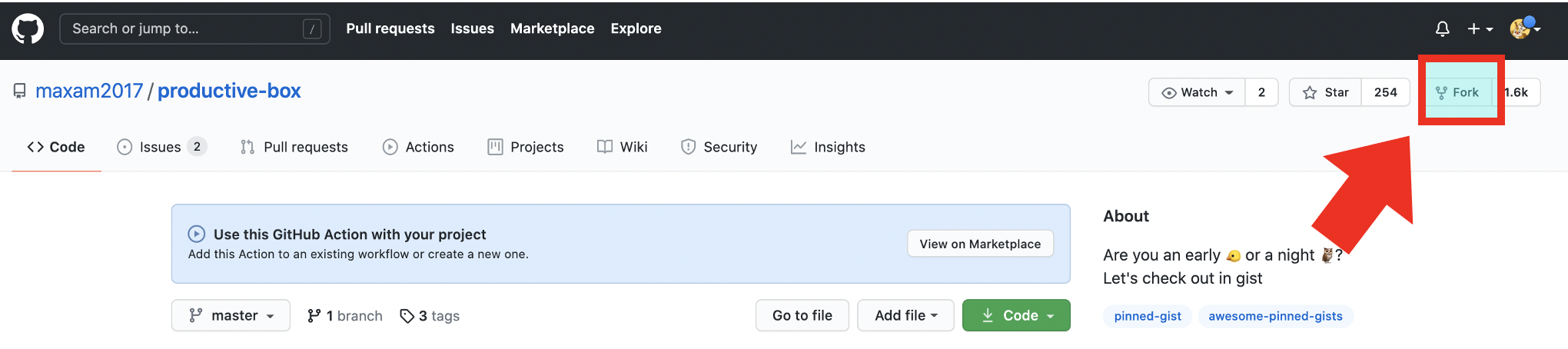 2. ์ค๋ฅธ์ชฝ ์๋จ ์์ ์๋ Fork ๋ฒํผ ๋๋ฅด๊ธฐ