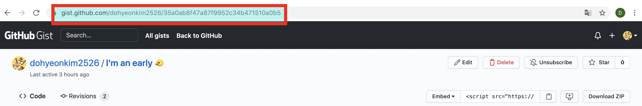 4.Gist ์์ฑ๋๋ฉด ํด๋น ํ์ด์ง url ๋ณต์ฌํ๊ธฐ