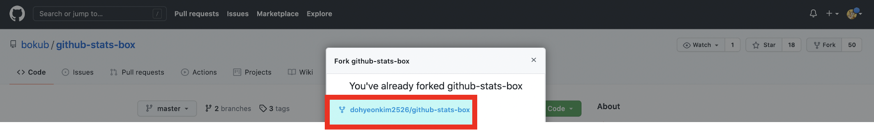 2. ์ค๋ฅธ์ชฝ ์๋จ ์์ ์๋ Fork ๋ฒํผ ๋๋ฅด๊ธฐ