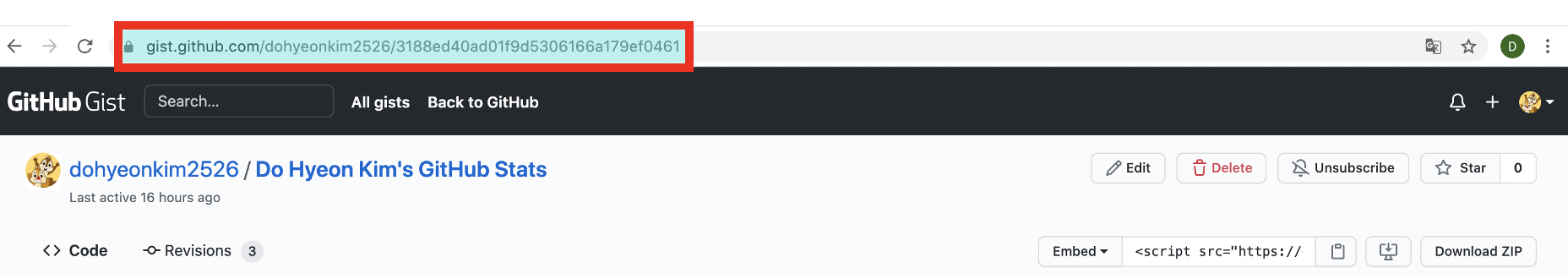 4.Gist ์์ฑ๋๋ฉด ํด๋น ํ์ด์ง url ๋ณต์ฌํ๊ธฐ