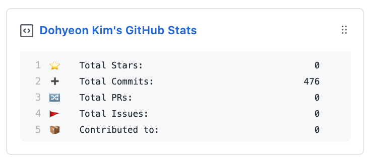 โ ์ ๋ชฉ ์์ฑ (ํ์๋ Dohyeon Kim's GitHub Stats ๋ผ๊ณ ์ ์)